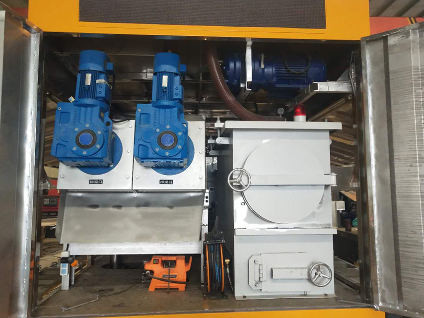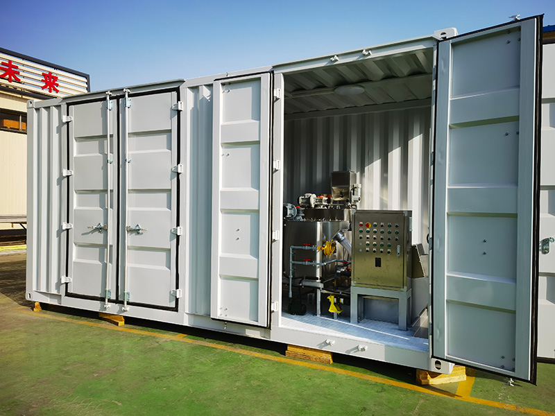 撬裝式污泥脫水集合主要包括:集裝箱、粗過濾、污泥輸送泵、加藥機、藥劑輸送泵、污水收集箱、污泥脫水機、發(fā)電機、濾液凈化單元等組成,可以根據(jù)現(xiàn)場需求,自由搭配組合。