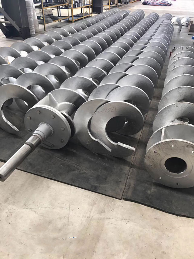 無軸螺旋輸送機與傳統(tǒng)有軸螺旋輸送機相比,由于采用了無中心軸、吊軸承設(shè)計,利用具有一定柔性的整體鋼制螺旋推送物料,因而具有以下突出優(yōu)點: