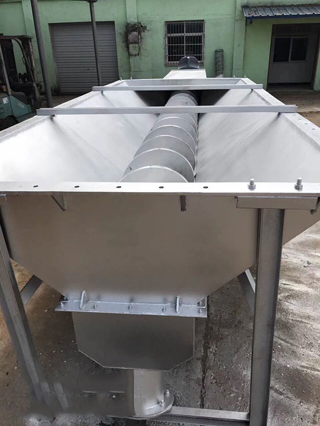 無軸螺旋輸送機與傳統(tǒng)有軸螺旋輸送機相比,由于采用了無中心軸設(shè)計,利用具有一定柔性的整體鋼制螺旋推送物料,因而具有以下突出優(yōu)點:抗纏繞性強。無中心軸干擾,對于輸送帶狀、易纏繞物料有特殊的優(yōu)越性。無軸螺旋輸送機用途: XDH型系列無軸螺旋輸送機用于污水處理廠輸送中細格柵其柵條凈距50mm的除污機柵渣和壓濾機泥餅等物料。 環(huán)保性能好。采用全封閉輸送和易清洗的螺旋表面,可保證環(huán)境衛(wèi)生和所送物料不受污染、不泄漏。 扭距大、能耗低。由于螺旋無軸,物料不易堵塞,排料口不堵塞,因而可以較低速度運轉(zhuǎn),平穩(wěn)傳動,降低能耗。扭距可達4000N/m。輸送量大。輸送量是相同直徑傳統(tǒng)有軸螺旋輸送機的1.5倍。輸送距離長。單機輸送長度可達60米。并可根據(jù)用戶需要,采用多級串聯(lián)式安裝,超長距離輸送物料。能機動工作。我公司開發(fā)生產(chǎn)的移動型無軸螺旋輸送機,能機動工作,一機多用。既可下方出料,又可端頭出料。采用特制襯板,該機可在高溫下工作。結(jié)構(gòu)緊湊,節(jié)省空間,外型美觀,操作簡便,經(jīng)濟耐用。
